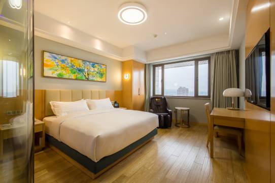 值得表扬的:前台给我们升房了波眠房,里面的床自带按摩解压功能,家人很喜欢,走了一天路晚上可以放松一下。机器人送餐服务很好,室外景观很不错,前台服务人员都很友善热情。酒店位置很好,去哪里还有打车都很方便,点外卖也很方便。室内有消毒柜小冰箱设备很齐全。