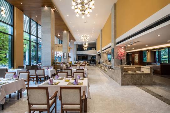 汉唐风格的中式园林中有40多种功能各异的露天温泉浴池、SPA水疗和大型水上乐园,让你体验真山真水的大自然温泉。