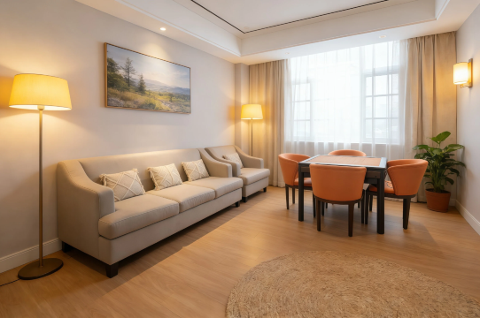 房间环境不错,卫生干净整洁,前台服务态度很好,免费停车,吃饭也方便,对面就是吾悦广场