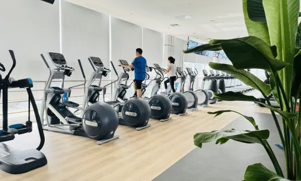 4. 酒店设施维护得还不错,客房内桌椅、灯具等完好,公区有休息区和简单健身器材,日常入住足够用。
