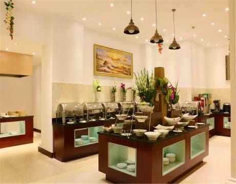 前台工作人员态度热情,办理入住很快,还主动推荐了附近的特色餐厅。早餐种类丰富,中式粥品、西式面包都有,味道也很赞。晚上还喝了宵夜稀饭。