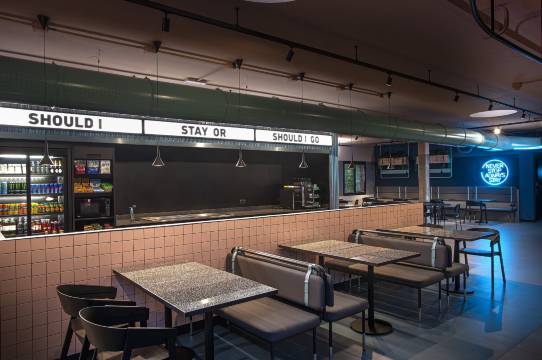 我们喜欢公用的休息区,可以在那里坐着放松。有咖啡、小吃和热食出售。还有一个微波炉可以加热食物。地下室有停车场。