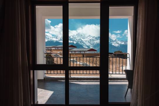 正对梅里雪山,不需要去任何观景台,躺在房间就可以欣赏日照金山。特别要提的是管家扎史都吉,让我们感觉到宾至如归,还为我们提供了姜茶和热奶,让本来身体略有不适的家人,马上适应了环境。