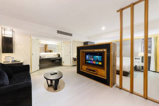 酒店客房现代主义风格搭配简约摆饰,创造室内空间感与明亮舒适。精选房内棉织品、采用巴黎GIVER CHIC洗浴用品,重视客人的入住品质,让顾客拥有良好休息、准备,再出发。