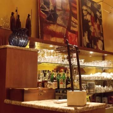 墙上装饰着各种漂亮的画作,早餐室里还挂着一些报刊亭的照片——很有意思。