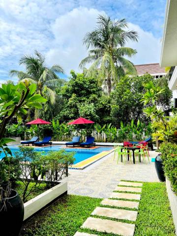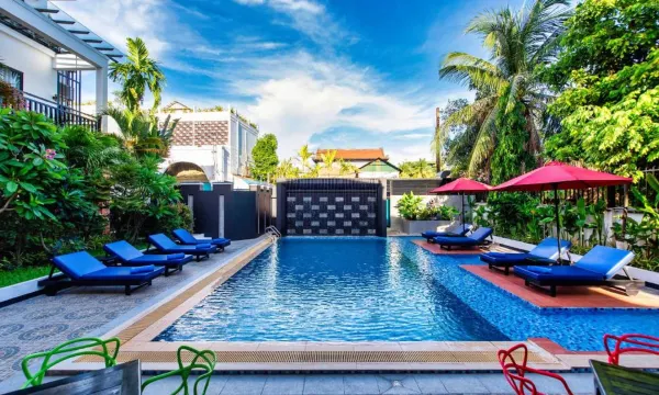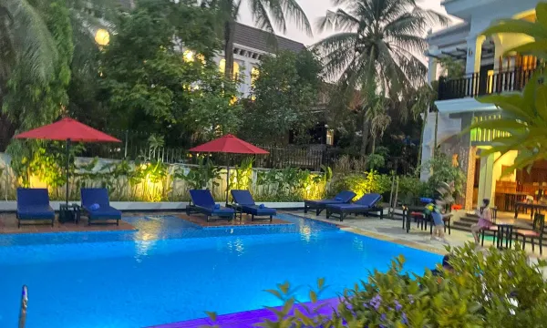 订这个酒店时看了评论,几乎完美,有点不信,入住后的才相信真的完美。性价比超高,服务员专业认真让人感动。地理位置距离小吴哥五公里,距中央大市场、夜市一公里,房间卫生整洁,面积大,早餐虽然品种不多,但精选了柬埔寨特色和西餐风味,免费寄存行车,订车,预约SPA都可以,有会中文的服务员,有问必答,酒店游泳池体验不错,不知道下次有没有机会再来。