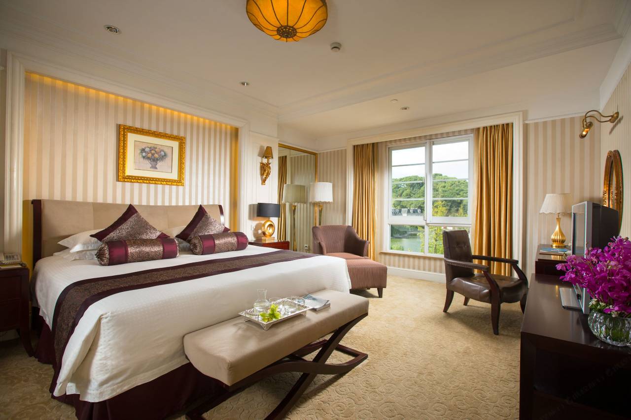 酒店按照枫丹白露古典别宫设计,拥有一百余间各种类型的豪华客房及1幢总统别墅。倚窗眺望,充满法兰西浪漫情愫的山景、湖景跃入眼帘。
