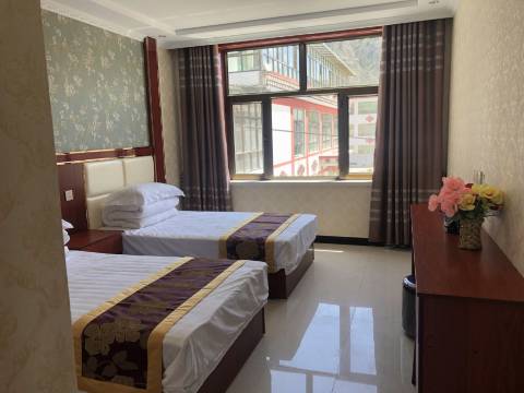 自家楼房改成的酒店,门外有一个佛塔,静谧。