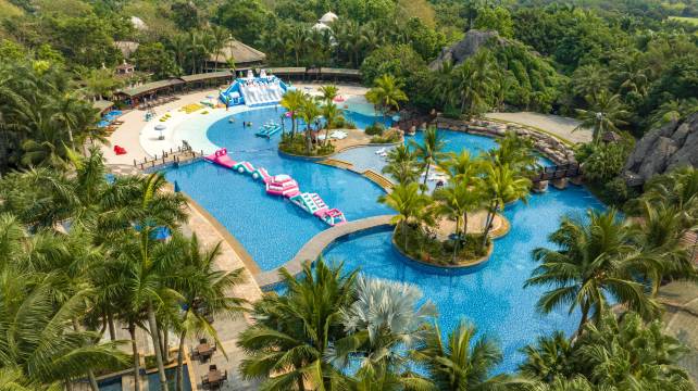 2,200㎡水上乐园,建有户外游泳池、人造沙滩、沙滩足球及排球场、户外表演及派对大舞台。