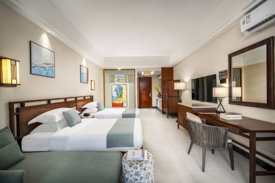 宁静典雅的客房,充满着家庭的和美。设施完善及个性化的空间设计,安全舒适的客房布局合理、装修高雅,能满足品味非凡的您高标准需求。窗外宽大的阳台和美丽的海景以及宜人的空气,使您在感受室内温馨的同时更能享受到大自然的沐浴之情。