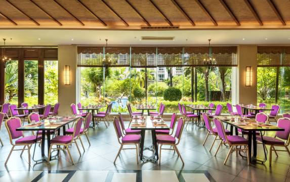 海景西餐厅紧邻大海,自然通透,环境优雅,紧靠酒店园林,是您品茶、观景的上选之地,也是您游玩归来小息的好地方,可以让您一边品尝美味佳肴,一边感受椰风海韵、倾听海浪声声。