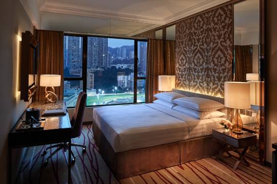 酒店设客房及套房,包括尊尚三人客房、尊尚豪华家庭四人客房以及一系列特色主题套房,大部分房间都能俯瞰跑马地马场翠绿怡人的景色。