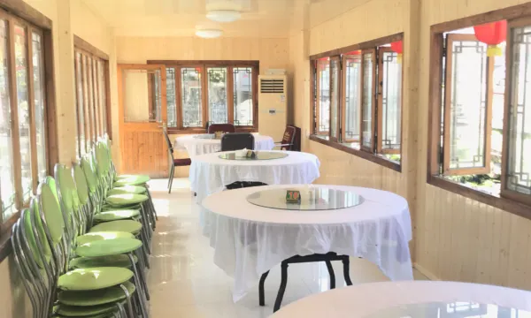 安吉桃园酒店是以宾馆的形式建造,实施齐全,切身为游客打造舒适,优雅的住宿环境。酒店还拥有专业的农家餐厅,可供200人同时就餐,餐厅内干净卫生,农家饭菜美味而附有特色。