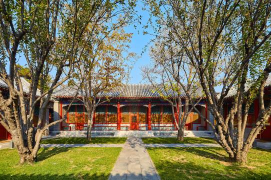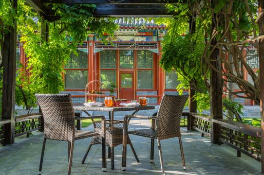 酒店保留了庭院的传统布局、材质及布料,顺着光影斑驳的长廊来到这片充满平衡之美的清朝低层建筑中,处处弥漫着宁和悠远的气息。