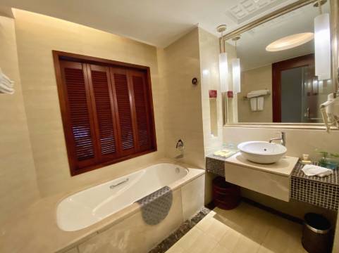 酒店设施齐全,有泳池、水上乐园、健身房、儿童乐园等,适合亲子游。泳池设计独具特色,宽敞干净。房间和公共区域的卫生状况良好,工作人员都很热情主动,特别是前台朗小姐服务主动热情,总体五星好评!
