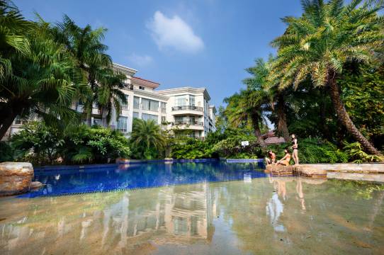 酒店占地5.2万平方米,建筑面积4.4万平方米,户外泳池2000平方米。酒店内迴廊曲折、瀑布飞泉、小桥流水、锦鲤游弋、鸟语花香,恰似人间四月天;棕椰成行、碧波绿水、洁白沙滩,又洋溢着东南亚风情