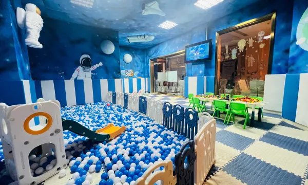 五一假期带着孩子家人一起出来玩,酒店服务人员很热情,酒店房间里干净整洁,酒店内有儿童啵啵啵池,酒店外还有孩子喜欢的秋千,滑滑梯,摇摇椅;中餐厅的菜可以团购,真的很划算;晚上还有篝火晚会。