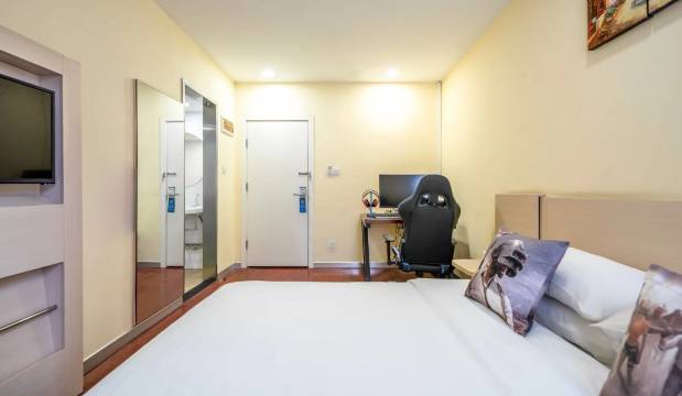 海南一家电竞为主题的酒店。一家致力于打造“专业电竞及舒适游戏空间”的连锁酒店品牌。我们将为客人提供以高于网吧的电脑配置,低于网吧的小时单价,定时贴心的客房服务,好友聚会的私密空间。酒店地处海口国贸CBD商圈,周边有“京华城”、“上邦百汇城”、“友谊阳光城”等大型商业体,商住皆宜。为客人提供大床房、双标房、四人间、五人间、4小时起钟点房等多个房型。配备全覆盖免费WI-FI、24小时热水、电吹风、免费一次性洗漱用品、定时唤醒等服务。