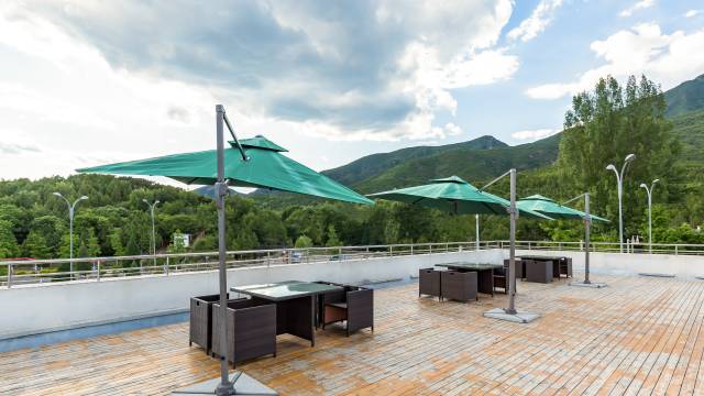 赶上了淅淅沥沥的小雨,从红螺寺回来时踩着湿漉漉的石板路走进院子,瞬间被这里的安静治愈了。雨声敲打着屋檐,院子里的绿植更显青翠,完全听不到城市的喧嚣,只有自然的白噪音,晚上睡得特别沉。