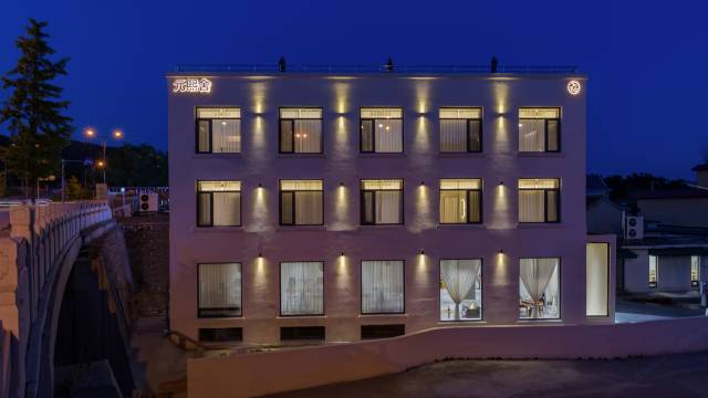 元熙舍坐落在北方千年古刹红螺寺旁,北靠红螺山、南照红螺湖,临近景点,距雁栖湖景区车程约8分钟、神堂峪与慕田峪长城车程约16分钟。 是由旧楼改造成的新空间,整个建筑以灰白为主色调,打造出简约风格。