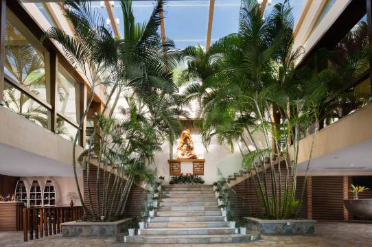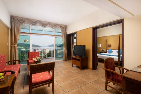 酒店坐山靠海,环境好,有内花园,全是实木家具,阳台看海,很美。