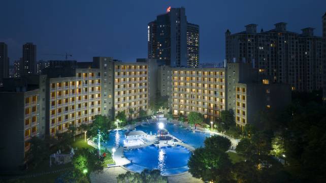 环境:5星。酒店外面有松鼠乐园,不是很大,但是遛娃足够。可以喂鱼、喂兔子、喂松鼠,还可以抓鱼。户外泳池绝对是小朋友的最爱,泳池很大,分了深水区和浅水区,池水据说是泉水,很干净,岸边的工作人员和救生员很负责。酒店大厅旁边有个小的电影院和KTV,上映的电影同步大的院线,如果运气不好碰到下雨天,不能喂松鼠和游泳,可以看电影或者K歌打发时间。
