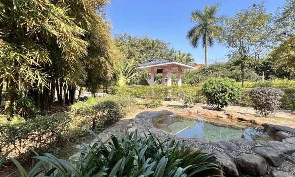 度假村被青山环绕,园林精致,绿意盎然。温泉池错落分布,泡汤时能听鸟鸣溪流,非常放松。