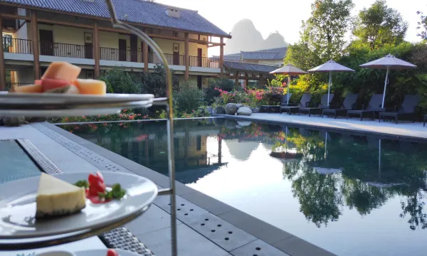 喜欢了十年的酒店,每次来阳朔必住,房间设施齐全,也很宽敞,泳池也很大,还有小孩游乐场,最主要是酒店就坐落在美丽的遇龙河边,看着远处青山秀美,一排排竹筏轻轻划过,就是一幅完美的画卷,酒店服务也很赞,很贴心,在这个酒店满足所有,一流景观,又能亲子,性价比很高