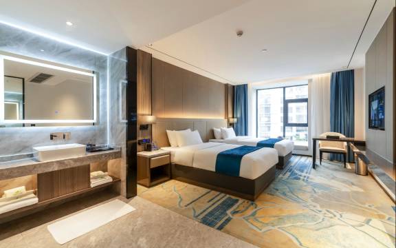 酒店位置很好很方便,离宝安客运地铁站很近,离高速口就几分钟距离。停车很方便,而且是免费的。卫生干净,阿姨见到了都打招呼。前台也热情有礼,服务很好。送东西都是机器人,确保了住客的隐私和安全👍,周边早餐店也有很多,品种很多的。大厅的年花很漂亮,非常nice。推荐推荐推荐。。。