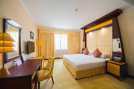 酒店按照星级标准修建,集住宿、餐饮、娱乐、休闲、歌舞表演于一体的综合性旅游度假酒店,酒店目前营业的各类客房四百余间,房间全部配置高级床品,舒适整洁,设施齐备;酒店设有3个大型宴会厅,可同时容纳1000人就餐;配套一流的歌舞剧院,可容纳850多人同时观看;酒店设有超大的免费停车场,免去您停车的烦恼。