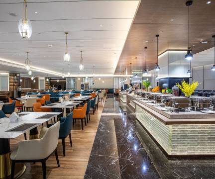 潜藏内在品质,尊贵精致服务,风格、情调各异的餐饮场所为您倾情演绎席上精彩。中餐厅及贵宾包间,由名厨主理,提供驰名菜肴,地道地方美食。全日制餐厅提供中西自助餐,品种丰富,格调清新。大堂吧汇聚名茶、精致茶点、软饮。酒店定能满足您商务宴请、会议、团体、婚宴用餐的不同需求。