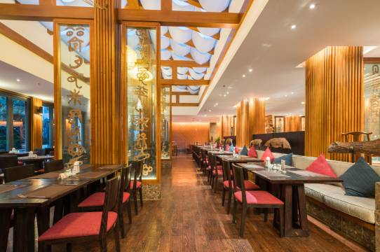 香格里拉玩时在酒店门口集合,留意到这家酒店,酒店前台帮我寄存行李,回来后直接入住,前台服务员小熊态度亲和,酒店里几乎每个员工都能礼貌打招呼,能感觉到酒店的管理是有专业培训的,想特别说说早餐,就这点远超大多数酒店,更多民宿是不可及的,作为外地人来云南,真的是外面的餐厅太本地化了,不能当早餐吃,这酒店的早餐,中西结合,水果新鲜,餐厅纳西风格,还有地道的四种纳西小吃,餐厅外的景色美。