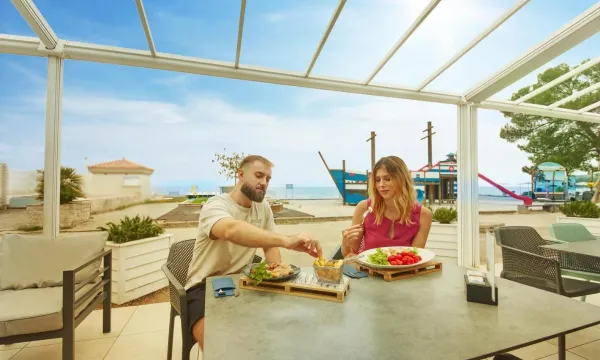 您可以到服务阿德里亚公寓 - 阿德里亚安卡兰酒店及度假村住客的餐厅享用一顿美餐,也可以到小吃吧/熟食店逛逛。欢迎光临酒吧/酒廊和池畔酒吧,喝一杯,放松一下;此外还有 2 间海滩酒吧供您选择。