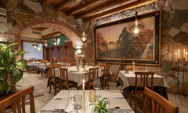 您可以去RISTORANTE FORTE DEL 48餐厅享用意大利菜,也可在这里的酒吧/酒廊小酌一杯,放松一下。或者可以待在房间里,享受部分时段客房送餐服务。每天 07:00 至 10:00 提供收费的自助式早餐。