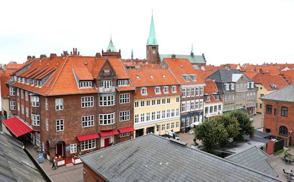 哥本哈根郊区,但是有火车连接到市区,火车晚上11点多都有,买哥本哈根公共交通的通票可以不限次数往返,班次也很多。酒店就在火车站对面,旁边也是小镇的商业中心,超市,银行都有。