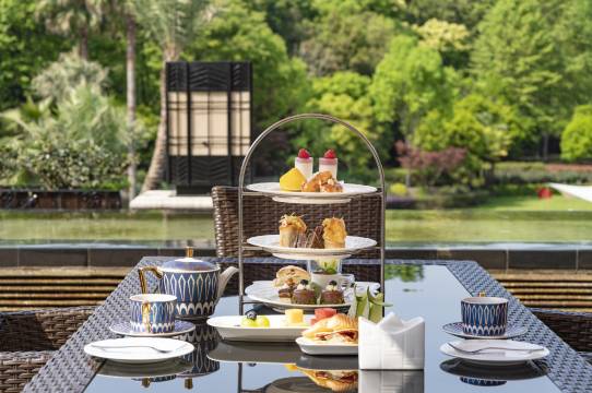 中式高级食肆和各类包房及翡翠庭中餐厅供应杭粤等菜式的创新料理、谭家玉馔和养身膳食。8间私人包房以及一间尊贵宴会包房,适合贵宾款待和商务宴请,低调而尊华,玫瑰花园厅是杭州别致高档婚宴场所惊喜之选,无论是尊豪婚礼宴会或新人私享欢聚,您和您的贵宾都将体验到我们殷勤好客及至臻服务,包含220平方米的无柱式宴会厅和美轮美奂的玫瑰花园泳池草坪婚典。英式酒吧的西式佳肴也值得前来一试。