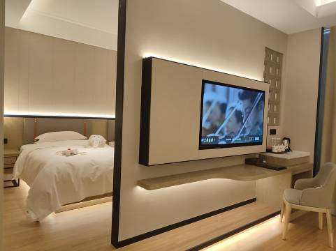 必须五星好评!房间设施真的超贴心,中央空调能用小度语音操控,不用起身调温太方便了,地暖制热均匀又不干燥,一进屋就暖乎乎的。最惊喜的是卫生间干湿分离设计,洗完澡地面完全不潮湿,打理起来特别省心。卫生清洁更是没得挑,床单被罩干净无异味,卫生间的瓷砖和台面擦得锃亮,连边角缝隙都看不到灰尘。前台服务也很到位,办理入住速度快,还耐心教**作小度控制设备,有需求回应得也及时,住得太舒心了!