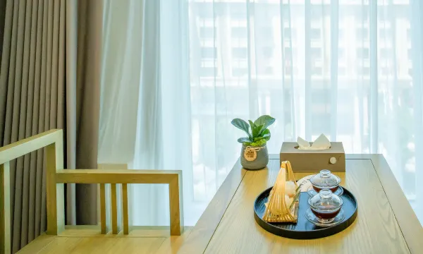 设施:非常新,淋浴器出水量很大,与马桶隔开,洗手台单独设置,全屋小度智能,窗边有茶台和茶点。三人间标配6瓶水。隔音效果很好,备注需要安静,给安排了离电梯远的房间。