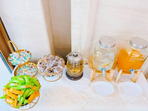 酒店工作人员都很热情,前台几个小伙子都特细心,临走给娃份小礼物,仪式感、情绪价值拉满。前台小物件儿应急很方便,还有总换花样的小零食以及永远排列整齐供自取的瓶装水。