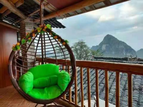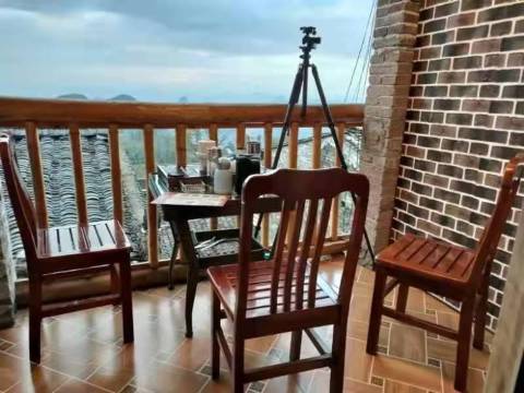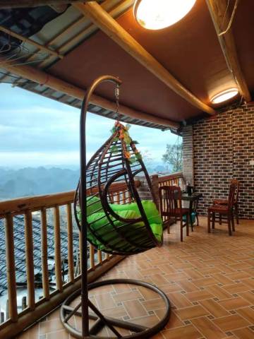 民宿在千年瑶寨景区内,有很大的观景平台。让你们在这里欣赏到瑶寨,你们可以在这里欣赏山景,日出,阳台上可以吃饭,喝酒,唱歌,观看日出日落,笑谈人生百味。观景阳台上也是最适合拍日出的地方。