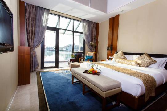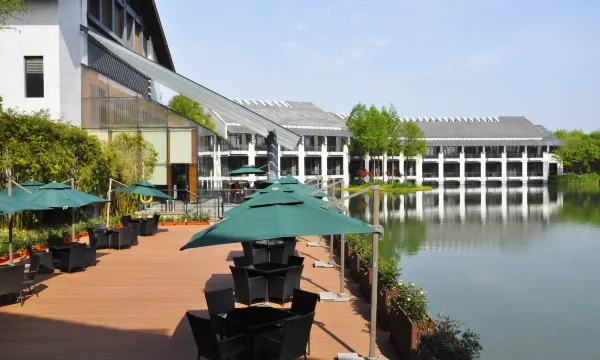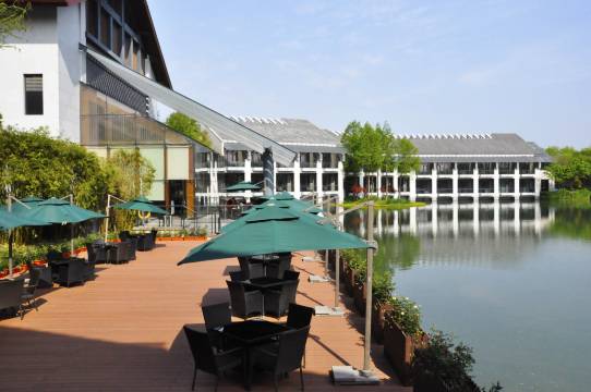 酒店设计融合了中国元素及西溪的自然生态元素,利用自然委婉的线条将室内外有机结合,并充分融入了节能绿色的理念。酒店楼房错落分布在林木花丛间,主楼恢弘雅致,配备完善先进的设施,绝大多数客房带有独立的室外阳台,或近萋萋草木,或临漾漾水波,或面鹤汀凫渚。宽敞的空间,适合摆上几张藤椅,一方茶几,一壶清茶,几碟糕点,伴着清淡空灵的景致,随心所欲度过宁静的时光。