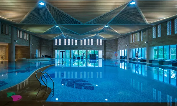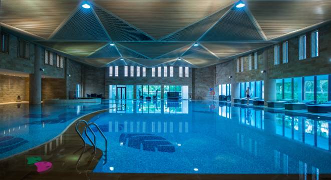 非常棒的酒店,一进门就让人感觉很像上海的东郊宾馆、虹桥宾馆之类的国宾馆。硬件方面,环境很美,绿化很多也搭理得很得当。入住的两间房是楼上楼下的联排别墅,虽装修略老派,却也妥帖:房间空调给力,房间一面都是玻璃的情况下也非常暖和,我们晚上甚至关闭了所有取暖设备;淋浴房的水很大,恒温可以;唯一的问题就和家里别墅一样,锅炉烧水的时候整栋最好错峰洗澡,相差10分钟给锅炉时间加热,也属于正常情况。游泳池健身房设备不错,管理得当,儿童乐园。自助早餐每日换餐,二楼中餐的点餐服务也可圈可点,酒店餐饮团队还是下了功夫的。