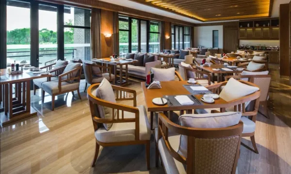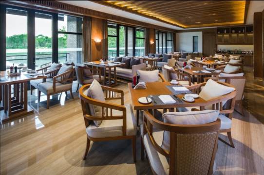 酒店设置了4间独具风格的餐厅和酒吧。充满西溪生态元素的逸园是酒店的中餐厅,简雅明亮的空间设计,将窗外的潋滟水光映现室内,流动飞扬的线条,将空间有序划分,分出了一隅私密。二层设有11间轩敞包厢,步入阳台便是一番清婉山水,偶尔白鹭矫捷的身影滑过水面。逸园中餐厅提供精美粤菜和地道杭州菜,选用西溪湿地自然孕育的生态美味为食材,丰富的菜品,层叠的鲜美。松露西餐厅位于酒店一层,设有干净整洁的开放式厨房,全天候提供丰富的自助餐。