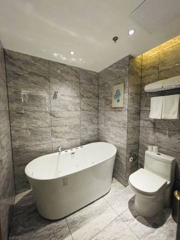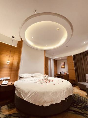 真不错啊 这个酒店 前台主动帮忙升级了影视大床房 房间很大 很宽敞 主要是特别干净 一尘不染的 扫地阿姨见到我们都会笑脸相迎主动打招呼 这完全就是五星酒店的样子的啊 不错 不错 真没想到这个价格可以住到这么称心的酒店 物超所值啊 以后过来出差首选你们家了 👍👍👍👍