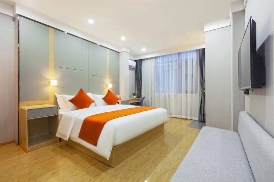 大床房,房间比较大,沙发、电视一应俱全,空调的制冷也很好,酒店内有香氛的缘故,整体没有异味,我鼻子过敏也并没有难受的感觉,好评!床品整洁,地板干净,离黄鹤楼和户部巷大成路都很近,这么好的位置这个价格,非常良心了。