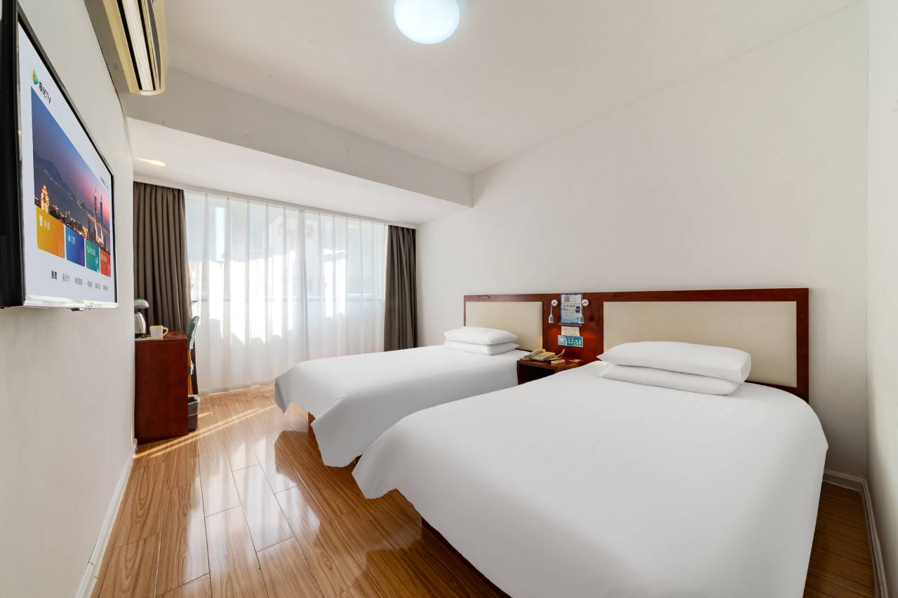 五一假期,看的很多酒店最便宜都是300出头,恰好看到这家酒店抱着试一试的态度订了下来没想到环境还不错,空间也很大,性价比拉满了,双人床房住了两晚才300,打扫卫生也很及时,很干净,房间还有wifi,空调效果好到爆,差点吹着凉了,唯一美中不足是好像桌上没有卫生纸只有厕所有,再就是双人房只有一把椅子如果能再加一把塑料椅子就很方便,可以两个人坐在桌子上吃东西,总体非常的奈斯。