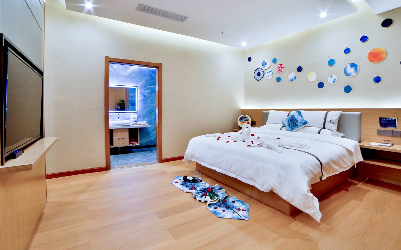 希尔曼酒店是六盘水少有的现代轻奢艺术酒店,坐落于六盘水钟山区德坞街钟山大道西段,北枕德湖,南靠瑶池,沪昆线、六威高速、凉都大道横亘其侧,交通极其便利。出门跨入绵延的钟山大道,推窗可揽市区秀色,周边拥有梅花山滑雪场、韭菜坪、三线博物馆、玉舍森林公园、乌蒙大草原、大洞竹海、黄果树大瀑布、龙宫、织金洞等众多知名旅游景点。70间(套)的客房形式多样,包括以曼阁、曼素、曼舍、曼遇、曼悦为主题的标准间、单人房、豪华房、娱乐房等,装修风格以现代轻奢为主,辅以安顺特色民族工艺蜡染,有“藏在六盘水的安顺蜡染博物馆”之称,每间客房都配有现代化的生活设施,统一规范经营,配以管家式服务,让旅客在蜡染风情的艺术房中尽享现代生活的安逸。