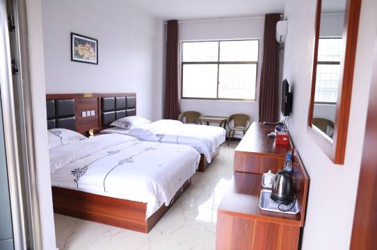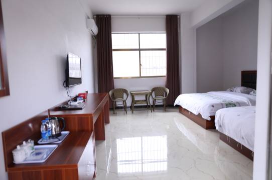房间很干净,里面外面都卫生,给人的第一感觉很好,老板全程微笑接待,指挥倒车入库,老板娘以很热情介绍周边旅游环境,周边小吃,位置以很好,总之没得说,给人的心情愉悦,下次来的首选