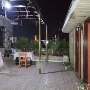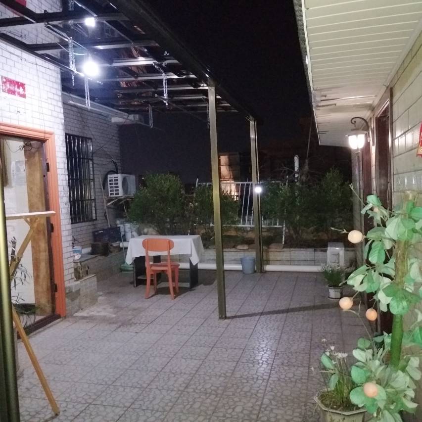 好像在一个便利店的后面入口,晚上的时候差点看不清这个牌子,房间看起来像用木板在顶楼搭起来的,倒是放了个桌子在楼顶