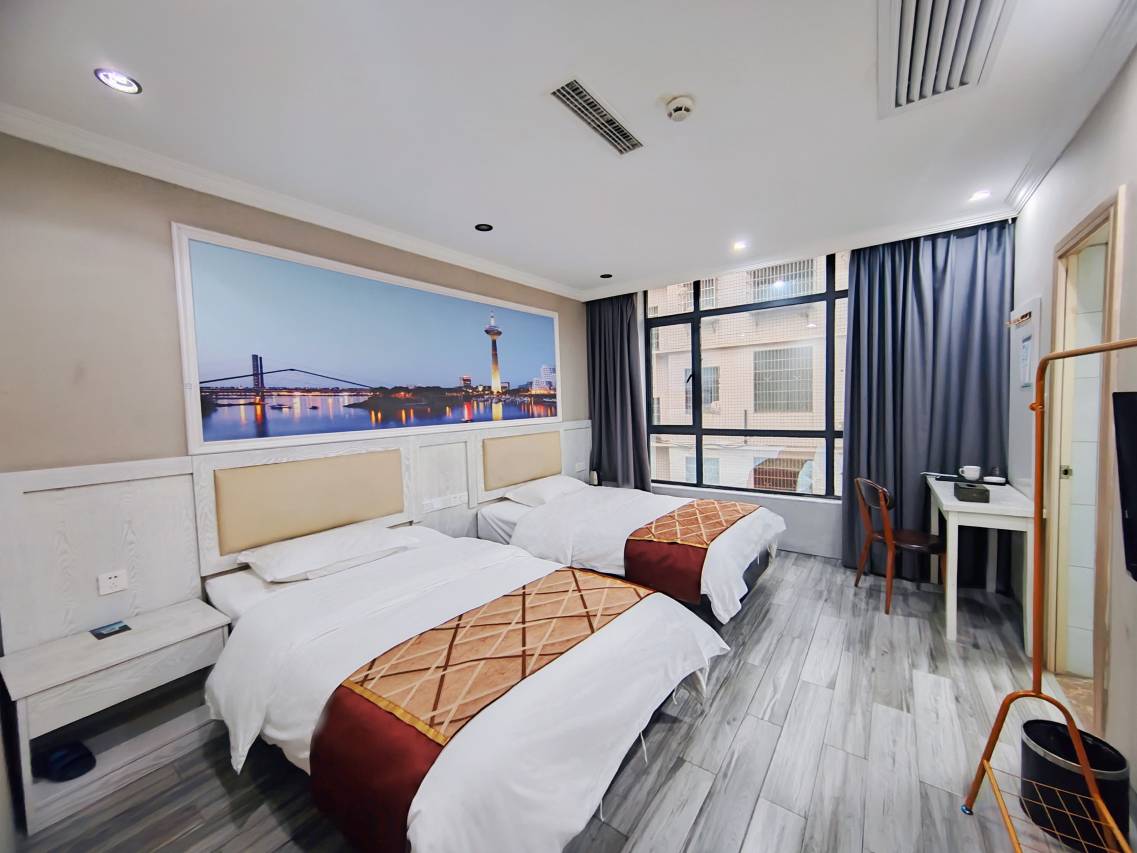 本店玻璃落地大窗,步行至地铁口5分钟,公交站1分钟,出行方便,地铁可直达市中心,免费停车,舒适整洁,中央空调,环境优雅,24小时热水,青山绿水空气清新,我们将以热情的服务,舒适的房间,期待您的到来!